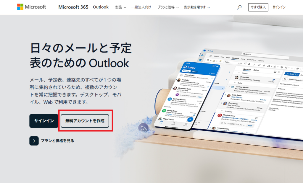Outlook.comのメールアドレスを作成する場合は下記手順を実施してください。