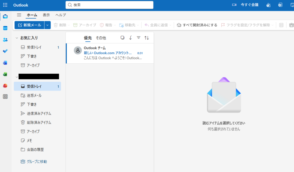 9. Outlookのメール画面が表示されればアカウント作成完了です