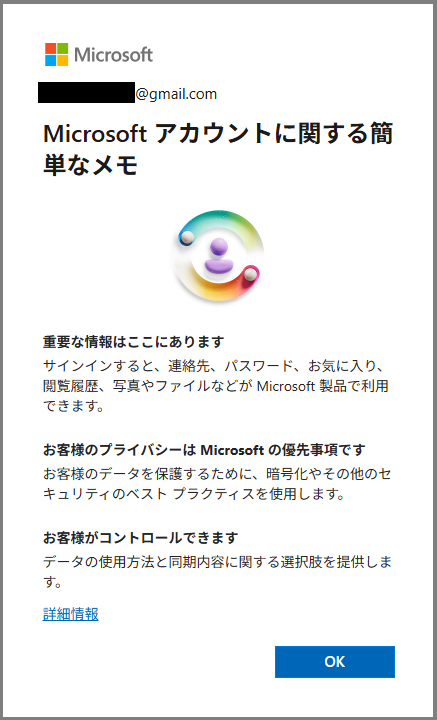 9. Microsoftアカウントの画面が表示されたら作成完了になります