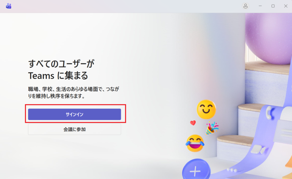 1. Teamsを起動し、[サインイン]をクリックします。
