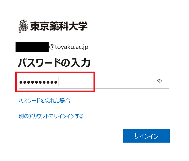 3. パスワードを入力し、[サインイン]をクリックします。