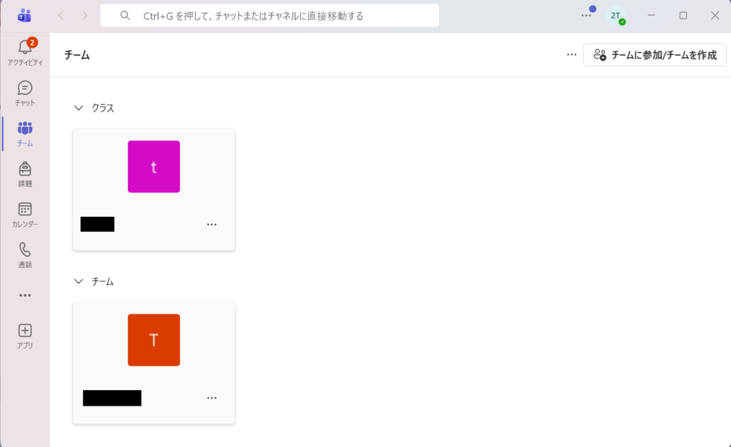 5. Teamへのログインが完了し、Teamsが起動します。