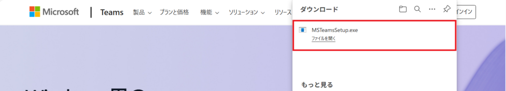 4. Teamsのダウンロードが始まりますので、完了すればインストール完了です。
